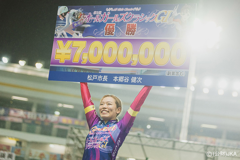 10月4日(水)に松戸競輪場で「オールガールズクラシック」の決勝戦が行われ、佐藤水菜(神奈川・114期)が雨をきりさくような鋭いまくりで初のG1タイトルを獲得した。