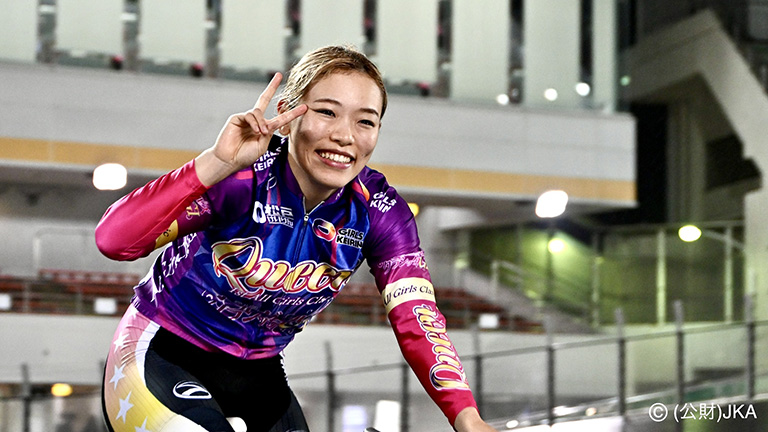 「新しいG1を取ったら絶対名前が残るし、後世に自分の名前が残ればと思っていたので嬉しいです。ただ優勝にこだわり過ぎても良くないので取れたらいいなと。1周半いくつもりでいて、前が自分を見てけん制していたので、タイミングはくるだろうなと見ていました。レースは覚えてなくて、外行ったときに伸びるよりも止まっている選手が見えて、それに合わないようにと。とにかく前に前にの競走でした。(優勝の確信は)4コーナーの下りで、下り切る前にヨコの選手がいなくなったので。あとは後ろから差されないように集中して走りました。(ガールズグランプリ出場が決まり)ティアラカップが次のレースに自動で進める試せるレースっていうのをみて、自分も(競輪祭で)試してみたいことを前向きにできると、やれる戦法を試したいなと思います。これからもメインは競技になるけど、現状で満足するとおわりなので。危機感を持っていきたいです」
