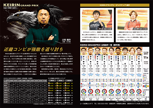 今年のS級S班からグランプリ出場切符をつかんだのは5人と、新世代の台頭も顕著だった一年を象徴する決戦となった。それでも昨年大会と同様に脇本雄太、古性優作の近畿コンビがV争いをリードしていく。古性は今年のGIでV3を達成。グランプリも勝って年間獲得賞金額の記録更新をとモチベーションは高い。集中力を高めて脇本との連係から23年の最後も締め括る。昨年覇者の脇本は怪我から復帰2戦目の競輪祭で決勝に進出と戦える状態までに仕上げてきた。1カ月でさらに調整は進むだけに別線の包囲網を粉砕する一撃が炸裂しそう。